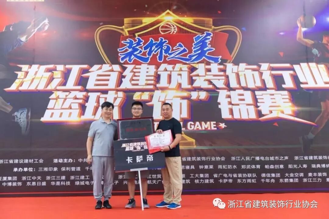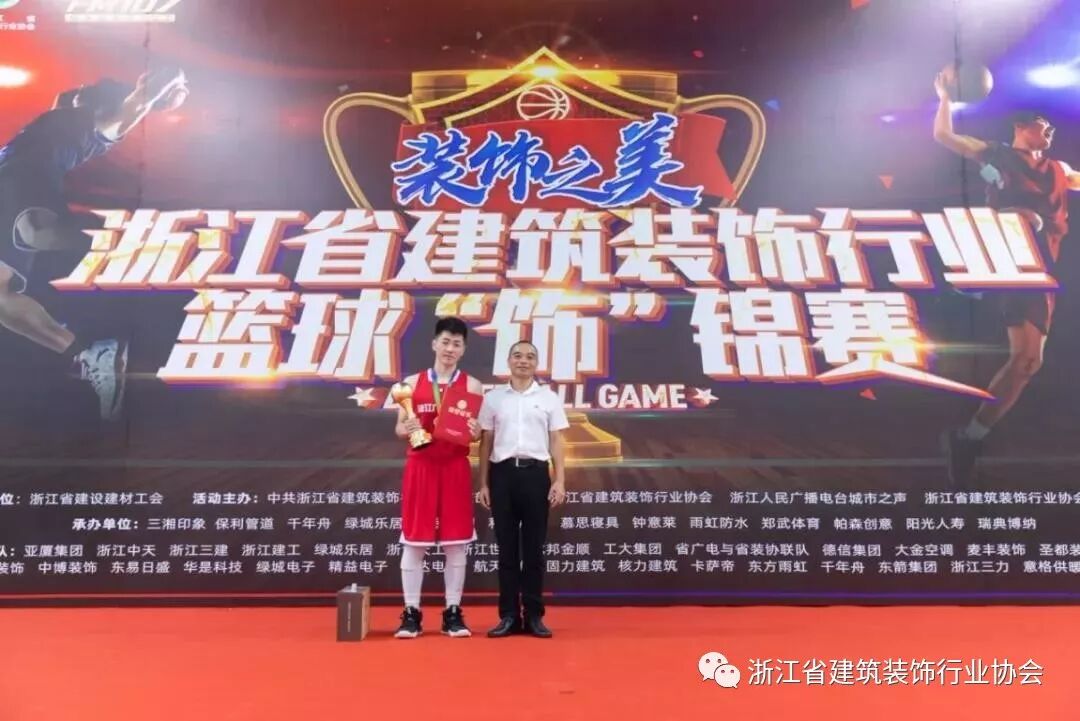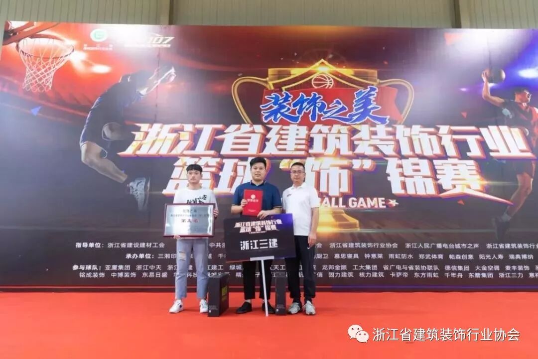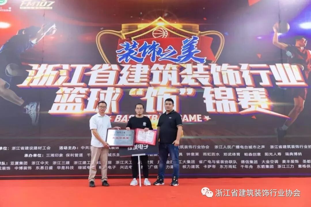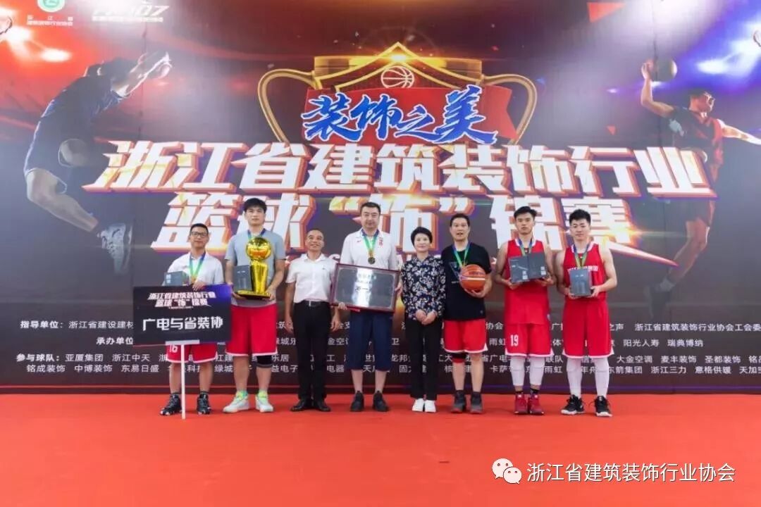 导读:9月21日下午,首届浙江省建筑装饰行业篮球赛在郑武体育公园圆满闭幕。本次篮球赛由浙江省建设建材工会指导,中共浙江省建筑装饰行业协会支部委员会、浙江省建筑装饰行业协会、浙江人民广播电台城市之声、浙江省建筑装饰行业协会工会委员会共同主办。浙江省建设建材工会主席谢四海、浙江省建设建材工会办公室主任郑普满、浙江省建筑装饰行业协会会长贾华琴、浙江省建筑装饰行业协会秘书长吴建挺、浙江广播电视集团城市之声总监来钧、副总监阿亮等领导和各企业嘉宾出席闭幕式并对活动给予高度评价。